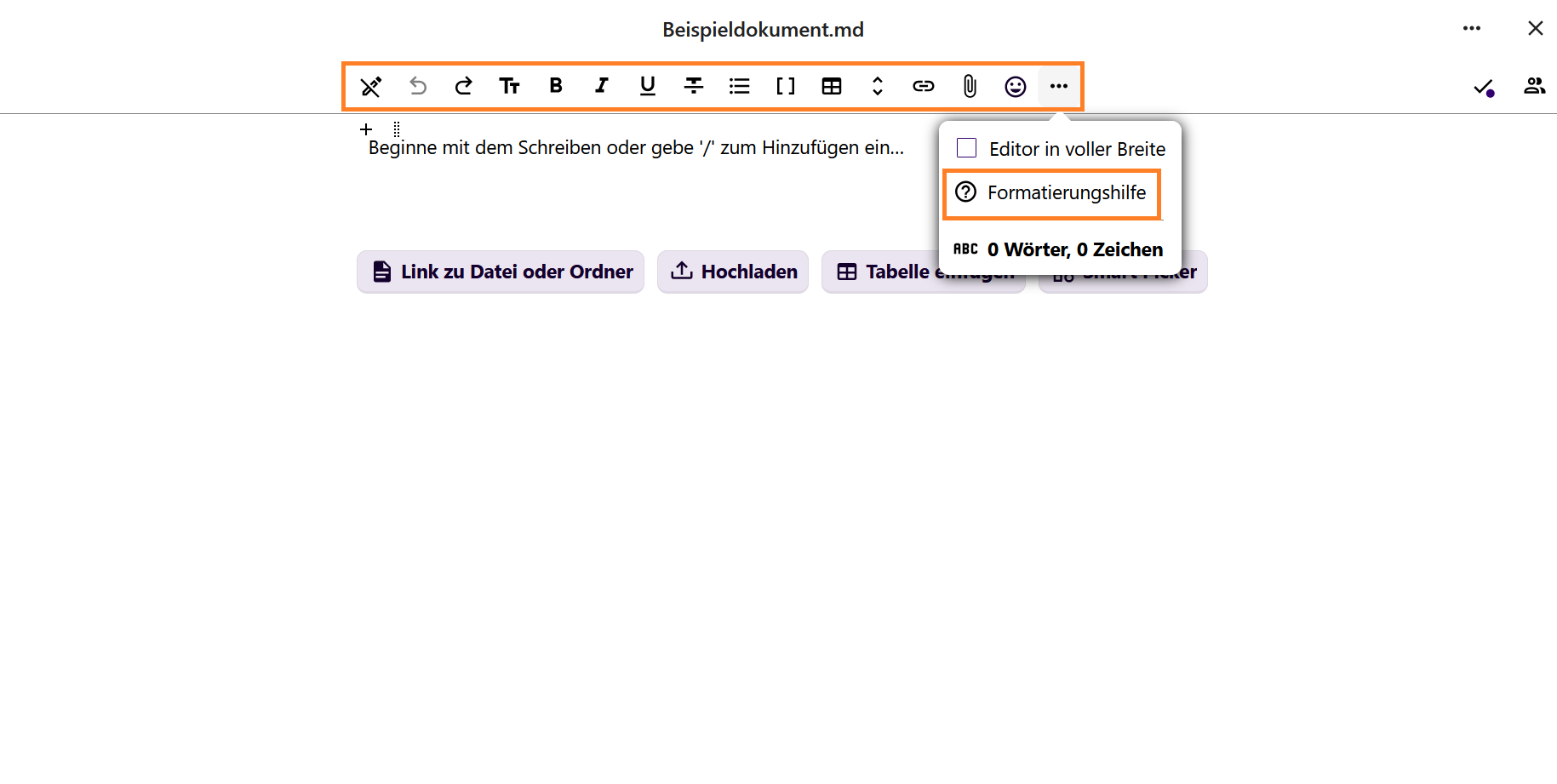 Bearbeiten Sie das Dokument. Nutzen Sie hierfür entweder die obere Zeile mit häufig verwendeten Formatierungen oder schauen Sie in der "Formatierungshilfe" nach Tastaturkürzeln.